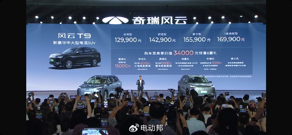 售 12.99 万元起,奇瑞风云 T9 中型插混 SUV 上市_搜狐汽车_搜狐网