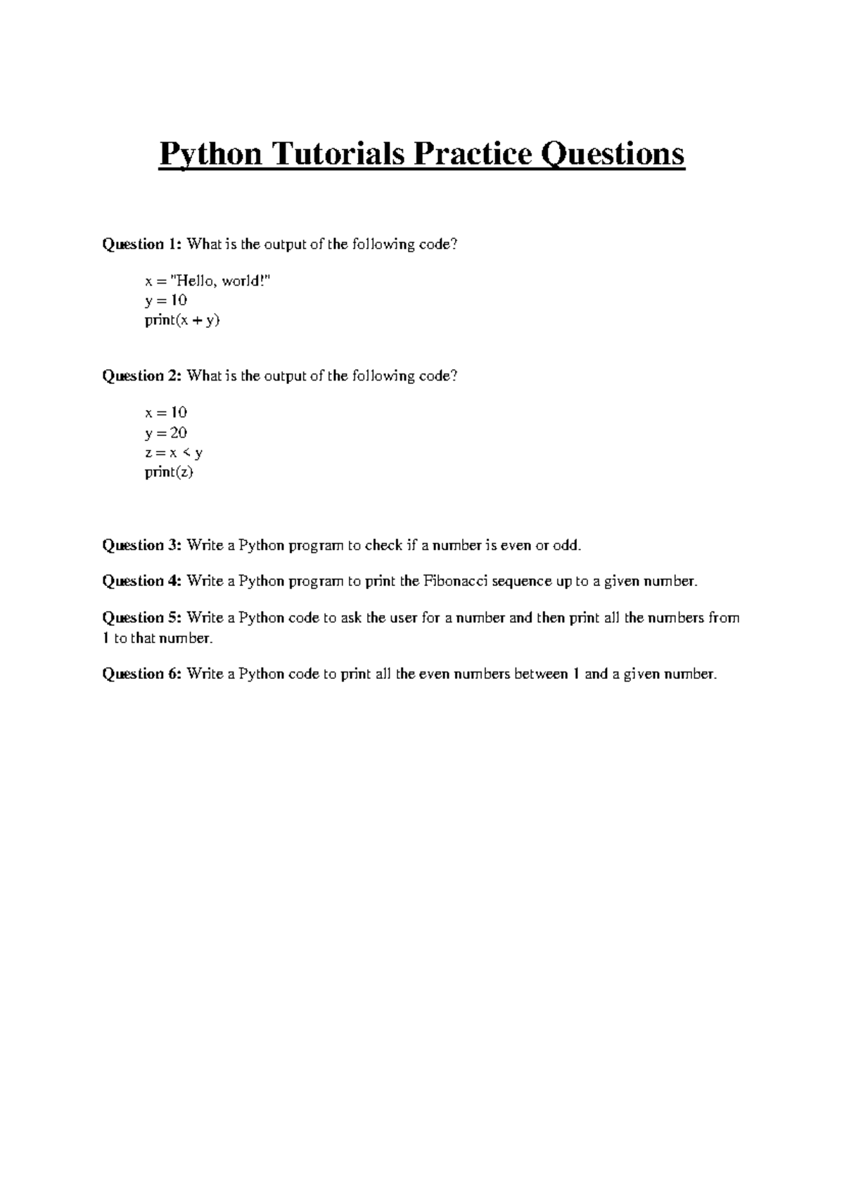 Python Tutorials Practice Questions - Python Tutorials Practice ...