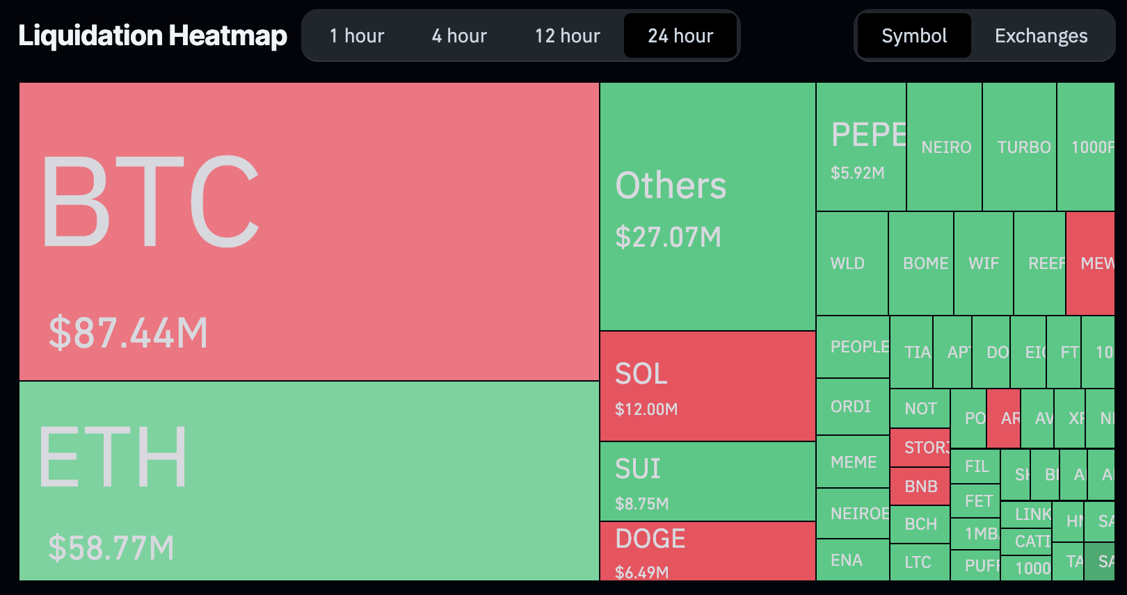 Crypto short liquidations breach $100M as Bitcoin reclaims $64K