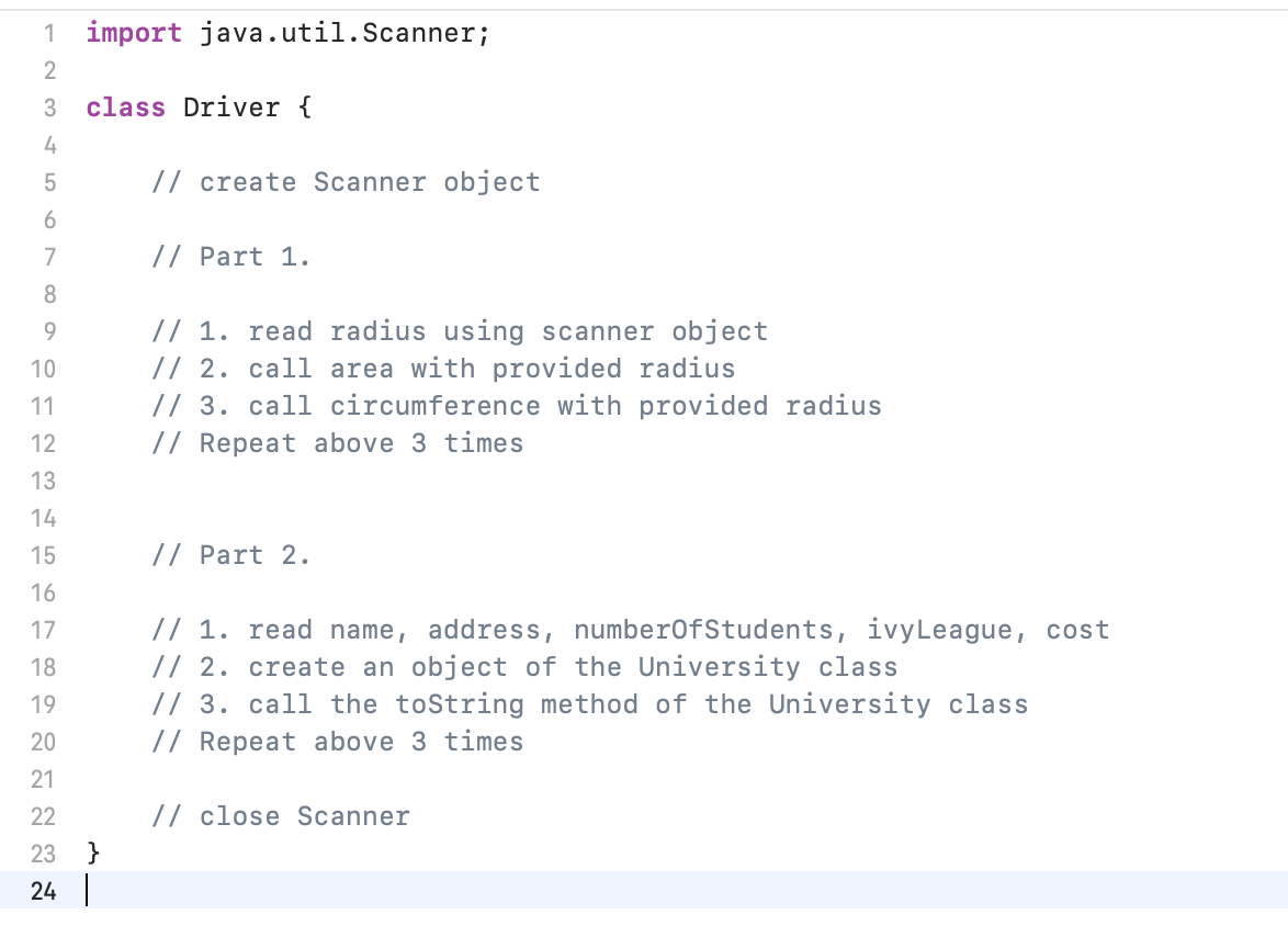 Solved 1. Complete the following program skeleton by writing | Chegg.com