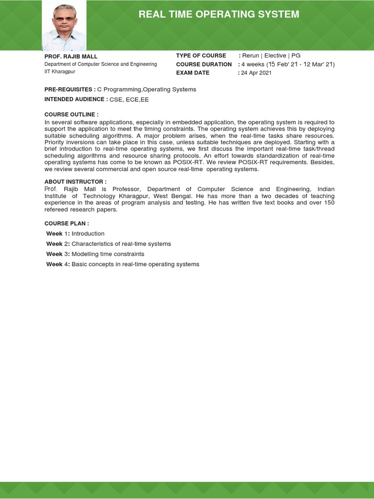 Real Time Operating System: Prof. Rajib Mall Type of Course: Course ...