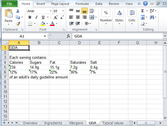 Food labelling made easy - a la calc blog: New feature: Excel export ...