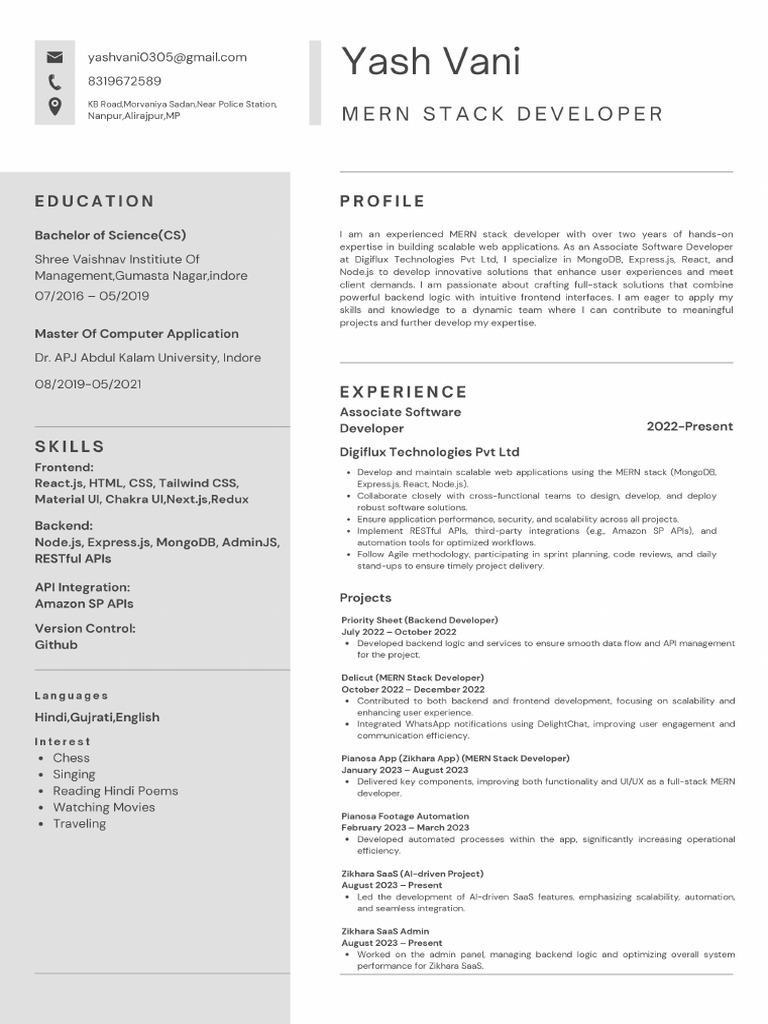 Review resume: 2.5 year of experience for MERN Stack developer : r/Resume