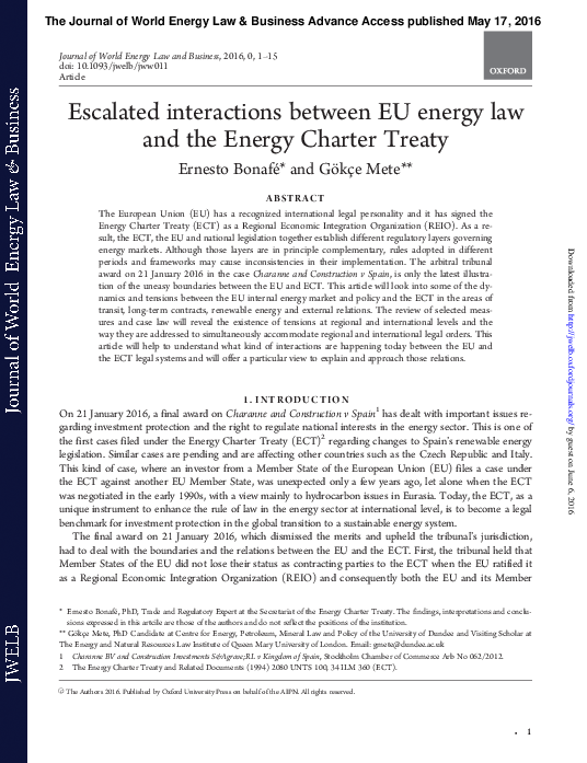 (PDF) EU Energy Law and the Energy Charter Treaty: Interactions and ...