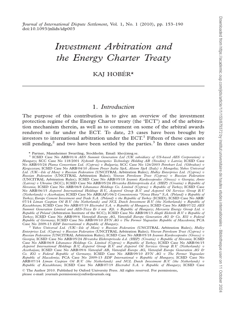 International Arbitration and Energy Charter Treaty | PDF | Treaty ...