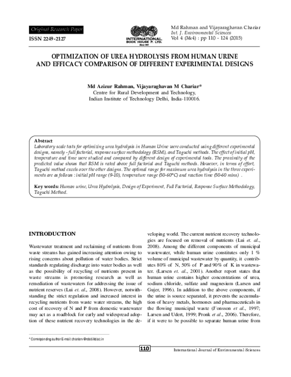 (PDF) OPTIMIZATION OF UREA HYDROLYSIS FROM HUMAN URINE AND EFFICACY ...