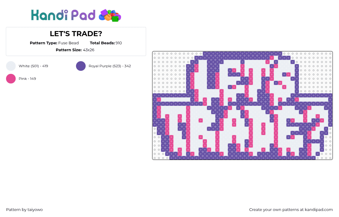 LET'S TRADE? Fuse Bead Pattern - Kandi Pad | Kandi Patterns, Fuse Bead ...