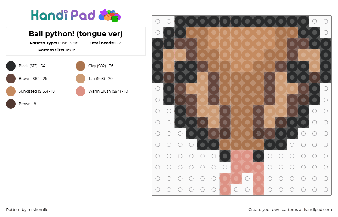 Ball python! (tongue ver) Fuse Bead Pattern - Kandi Pad | Kandi ...