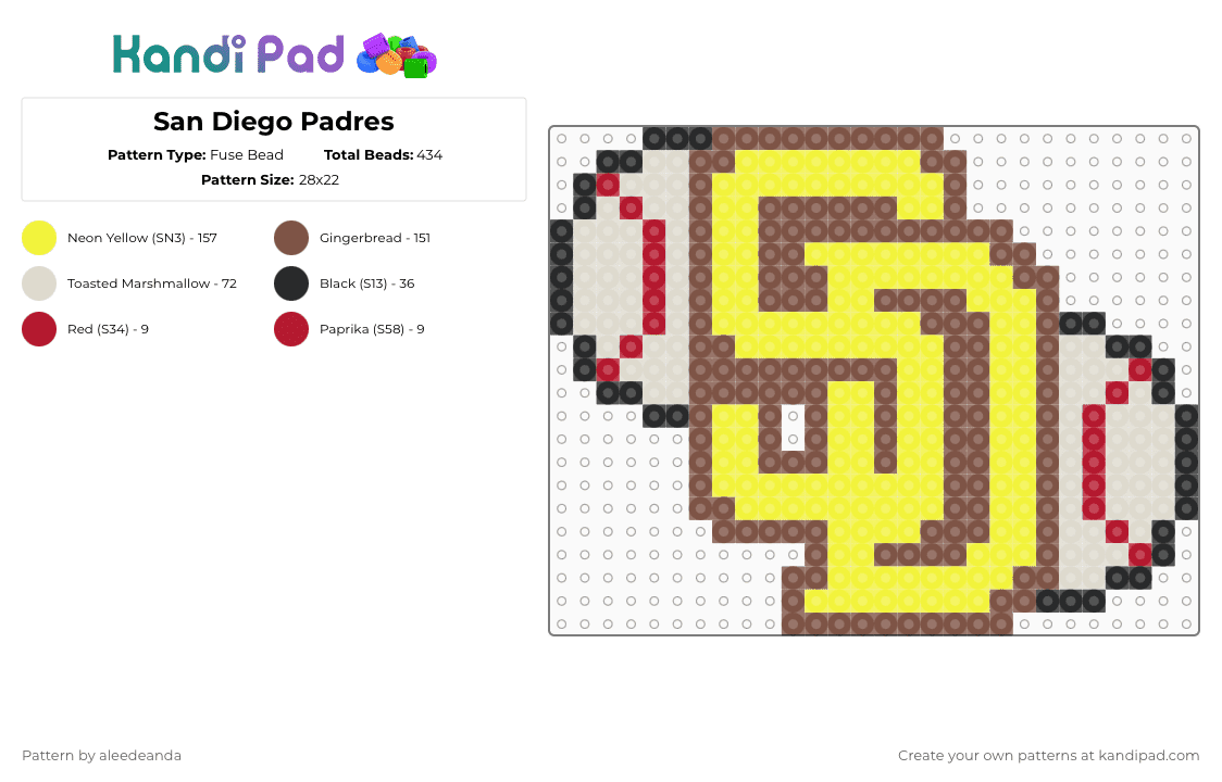 San Diego Padres Fuse Bead Pattern - Kandi Pad | Kandi Patterns, Fuse ...