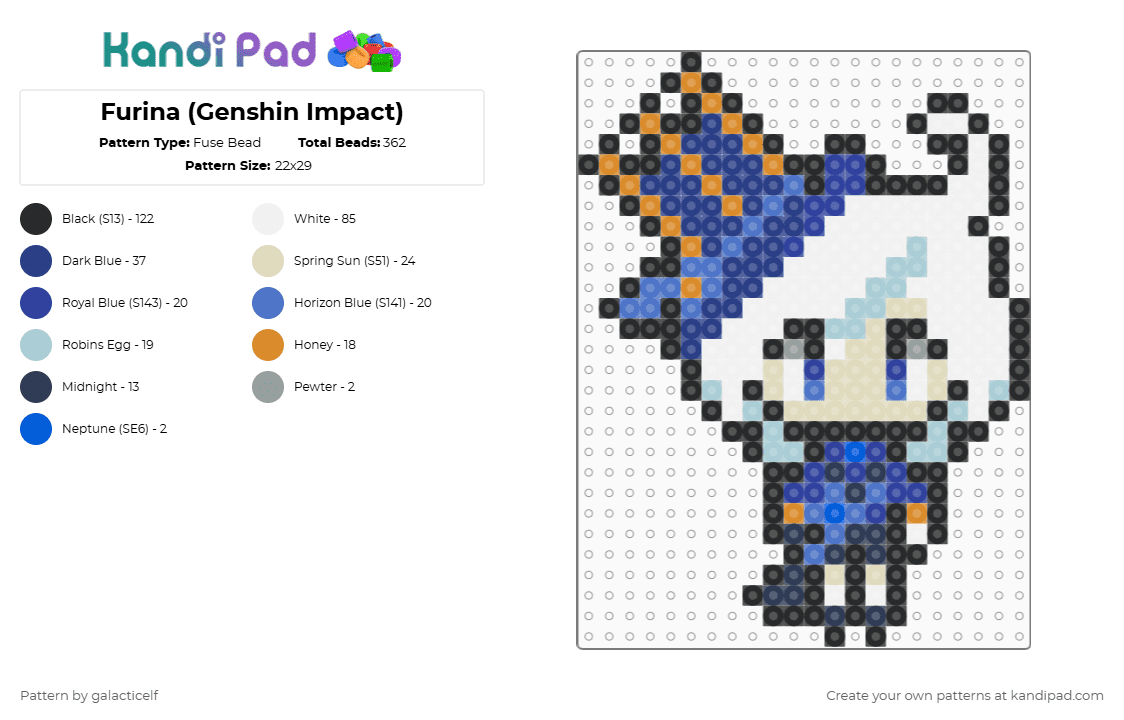 Furina (Genshin Impact) Fuse Bead Pattern - Kandi Pad | Kandi Patterns ...