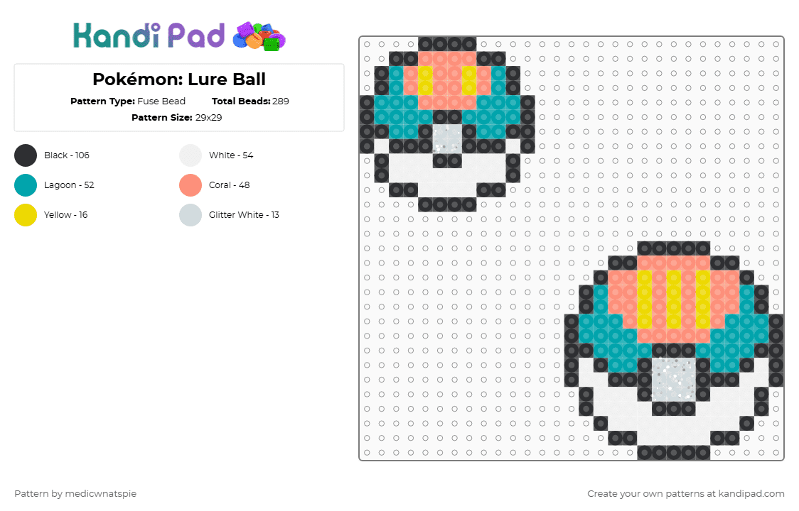 Pokémon: Lure Ball Fuse Bead Pattern - Kandi Pad | Kandi Patterns, Fuse ...