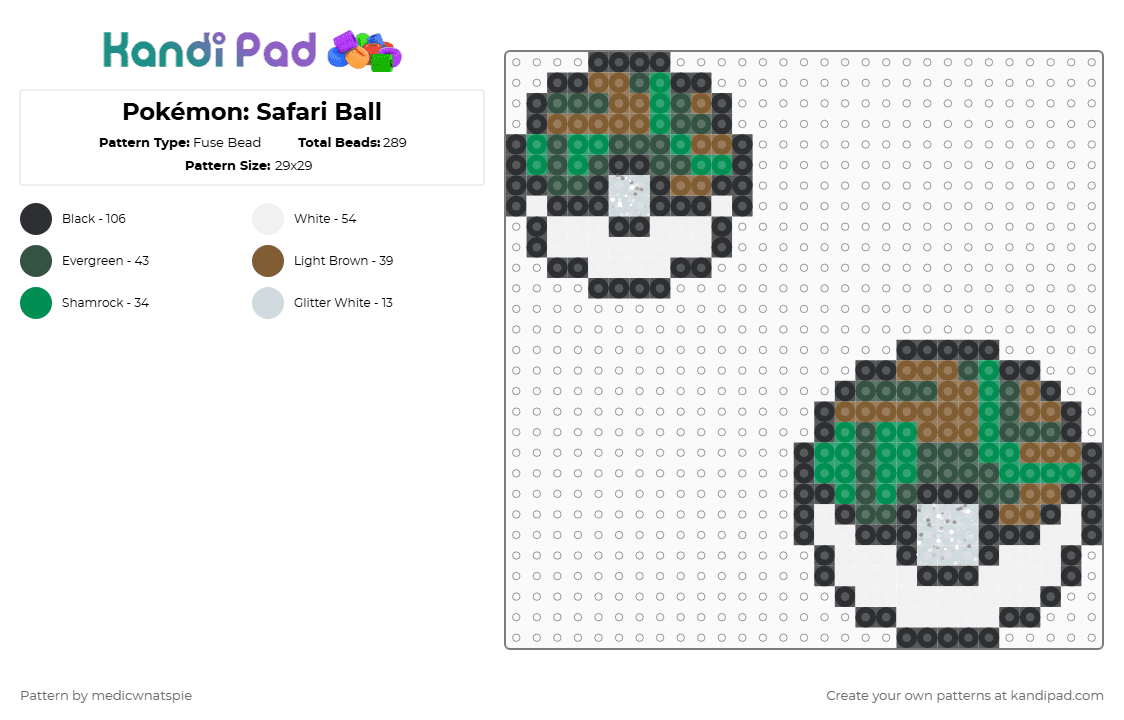 Pokémon: Safari Ball Fuse Bead Pattern - Kandi Pad | Kandi Patterns ...