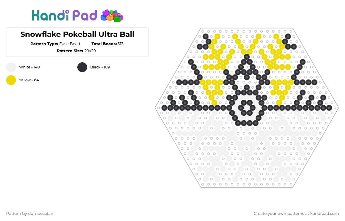 Snowflake Pokeball Ultra Ball Fuse Bead Pattern - Kandi Pad | Kandi ...