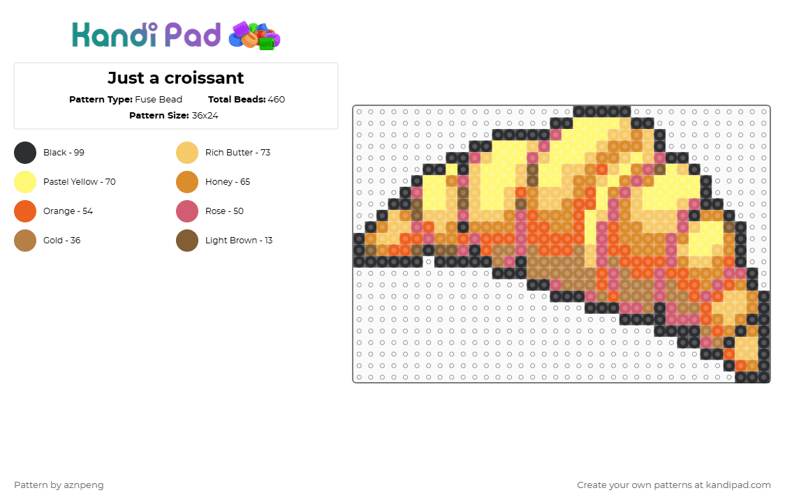 Just a croissant Fuse Bead Pattern - Kandi Pad | Kandi Patterns, Fuse ...