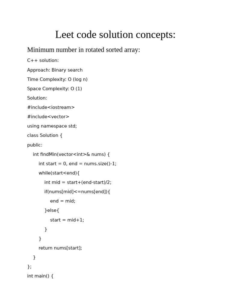 Leet Code Solution Concepts:: Minimum Number in Rotated Sorted Array | PDF