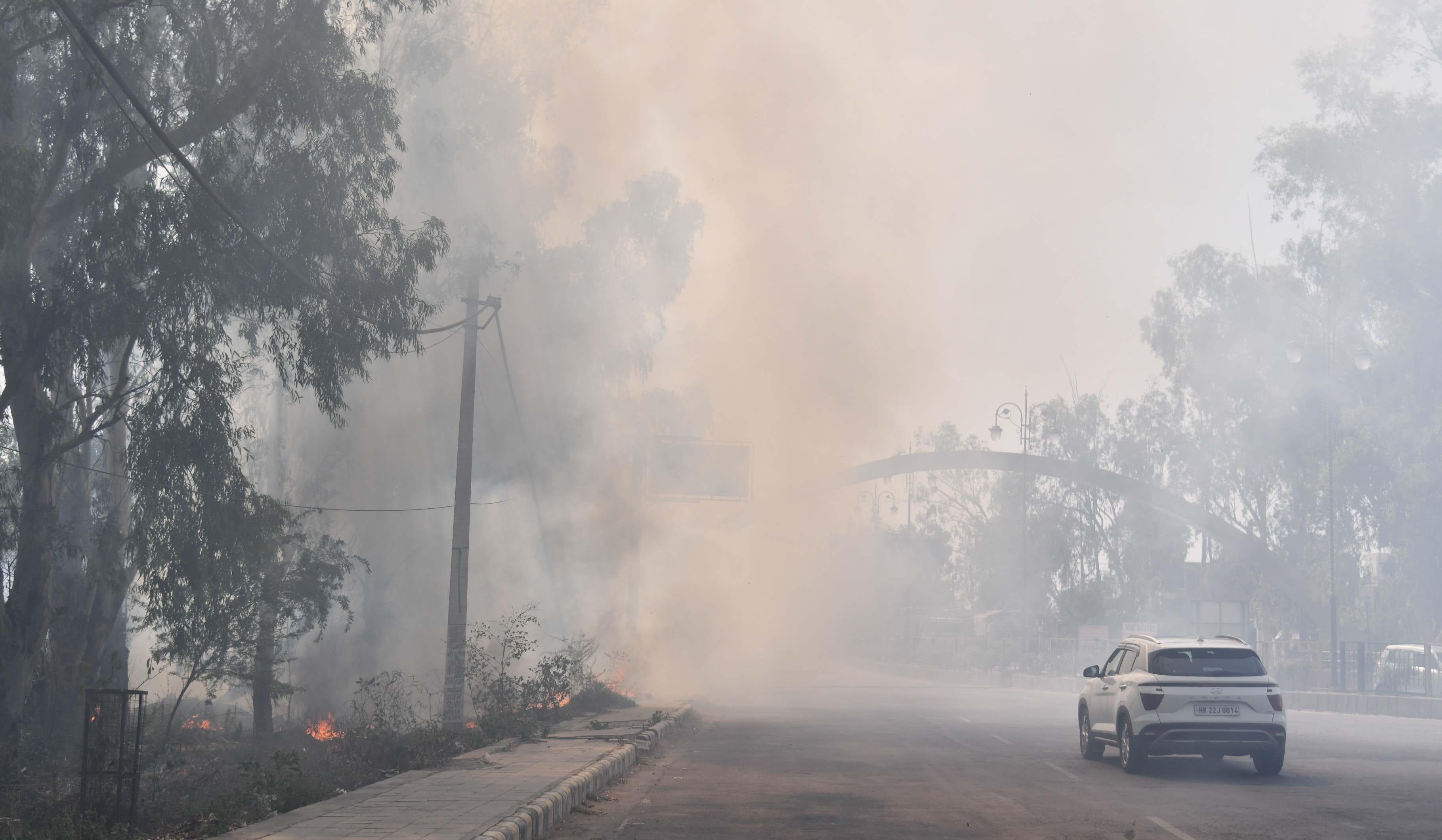 Fire Broke Out In The Bushes Near Prithviraj Chauhan Chowk, Controlled ...