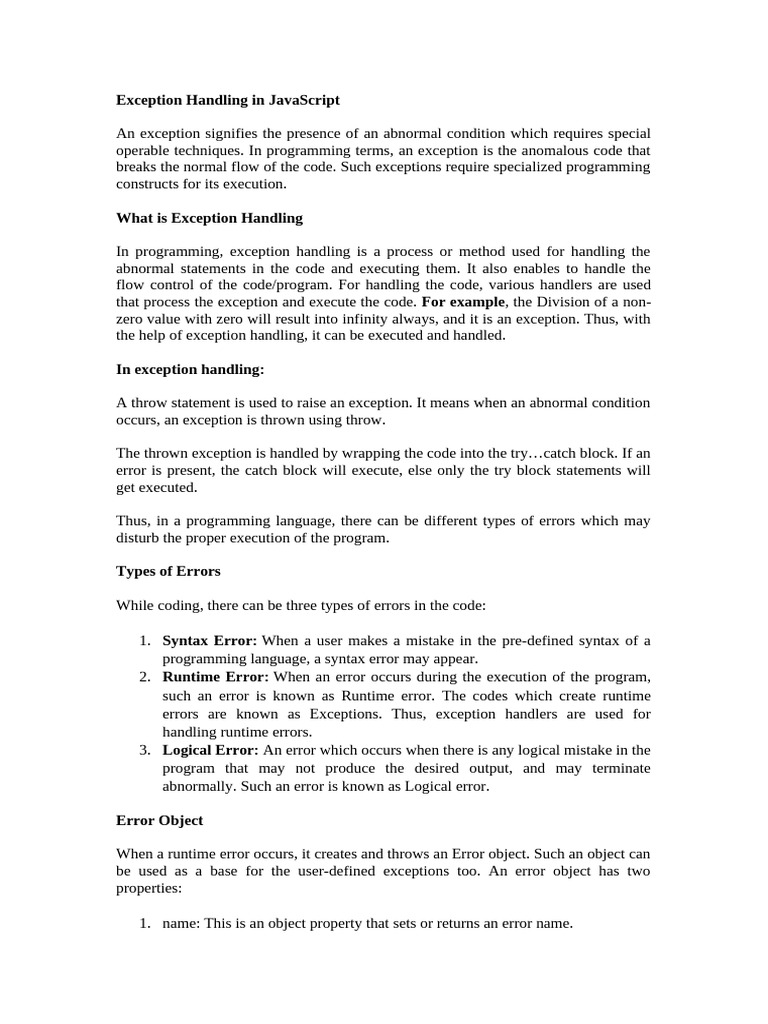 JavaScript Exception Handling Guide | PDF | Parameter (Computer ...