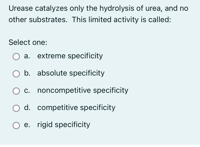 Solved Urease catalyzes only the hydrolysis of urea, and no | Chegg.com