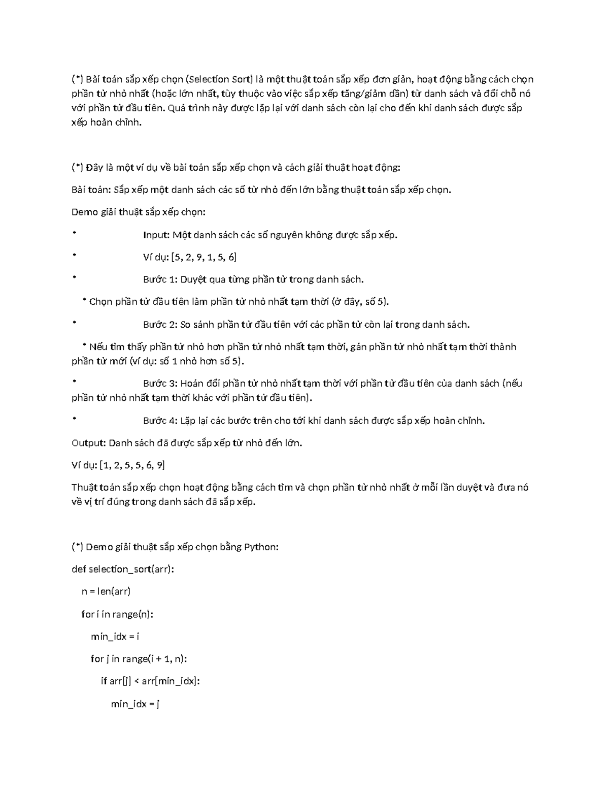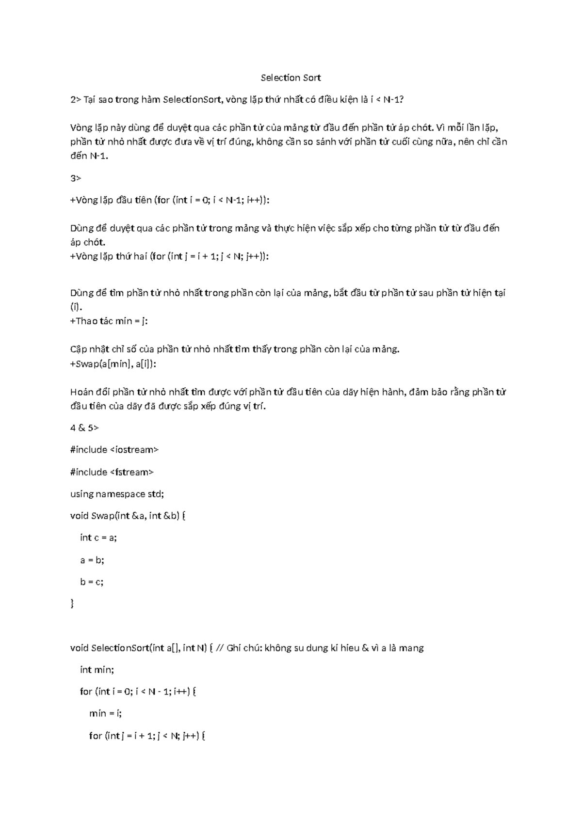 Giải Thuật Sắp Xếp Chọn (Selection Sort) - Hướng Dẫn Chi Tiết - Studocu