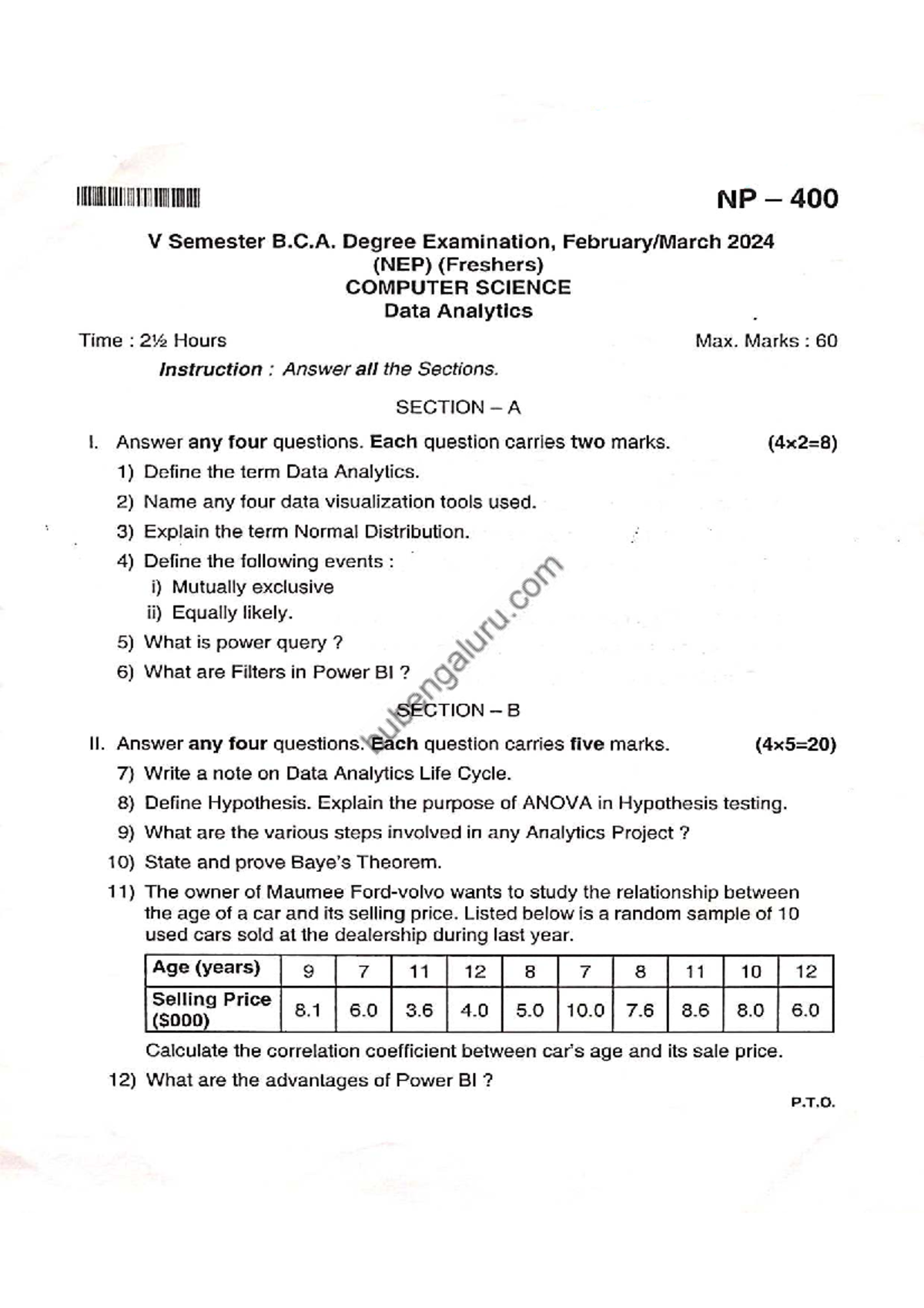 NP 400 V 5th Sem BCA Data Analytics Exam Paper 2024 - Studocu