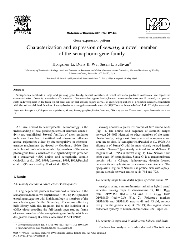 (PDF) Characterization and expression of sema4g, a novel member of the ...