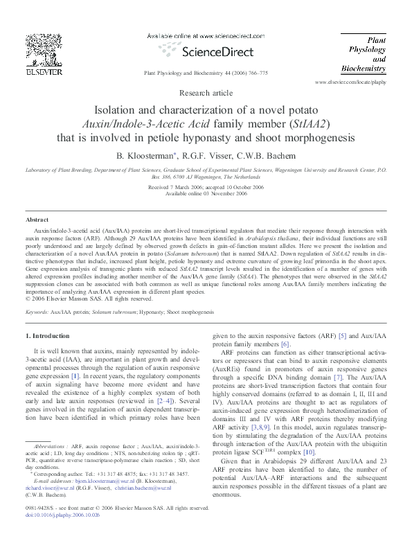 (PDF) Isolation and characterization of a novel potato Auxin ...
