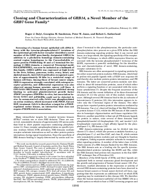 (PDF) Cloning and Characterization of GRB14, a New GRB7 Family Member
