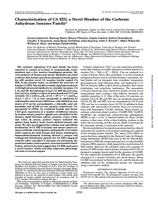(PDF) Characterization of CA XIII, a Novel Member of the Carbonic ...