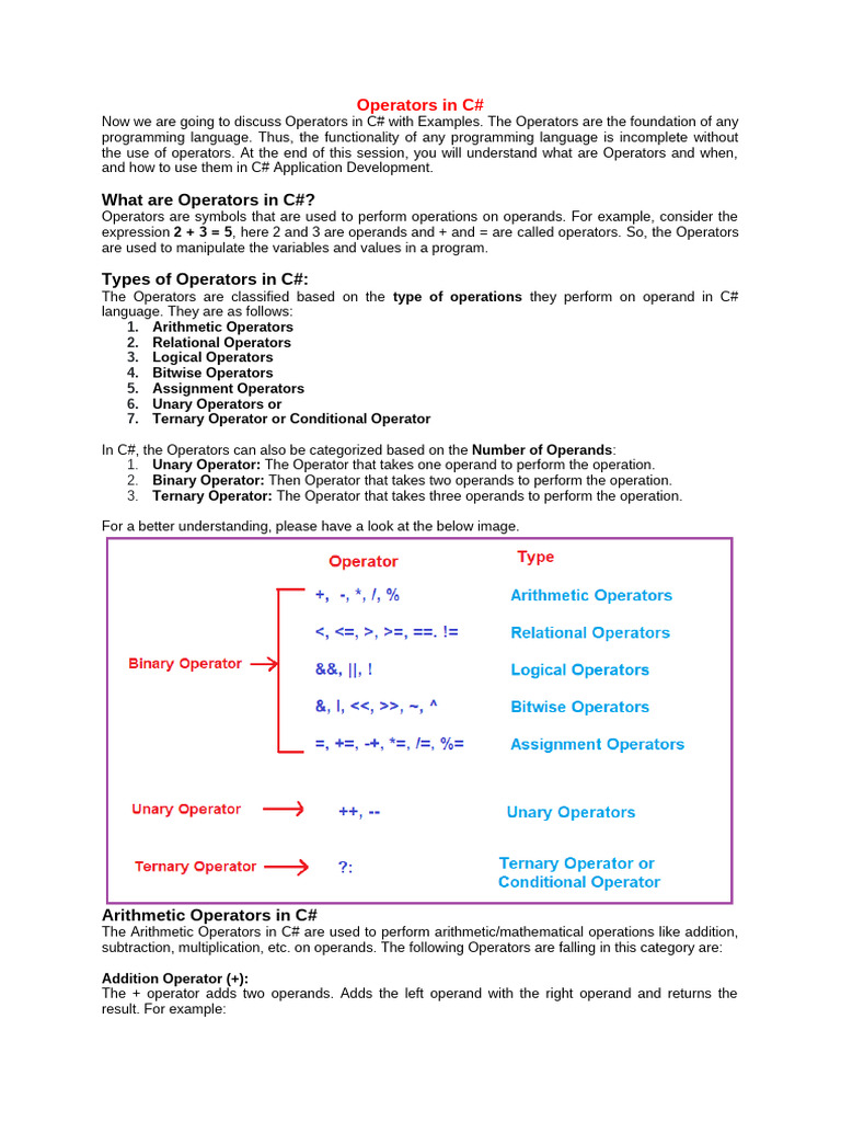 C# Operators - Arithmetic, Comparison, Logical and More - PDF | PDF | C ...