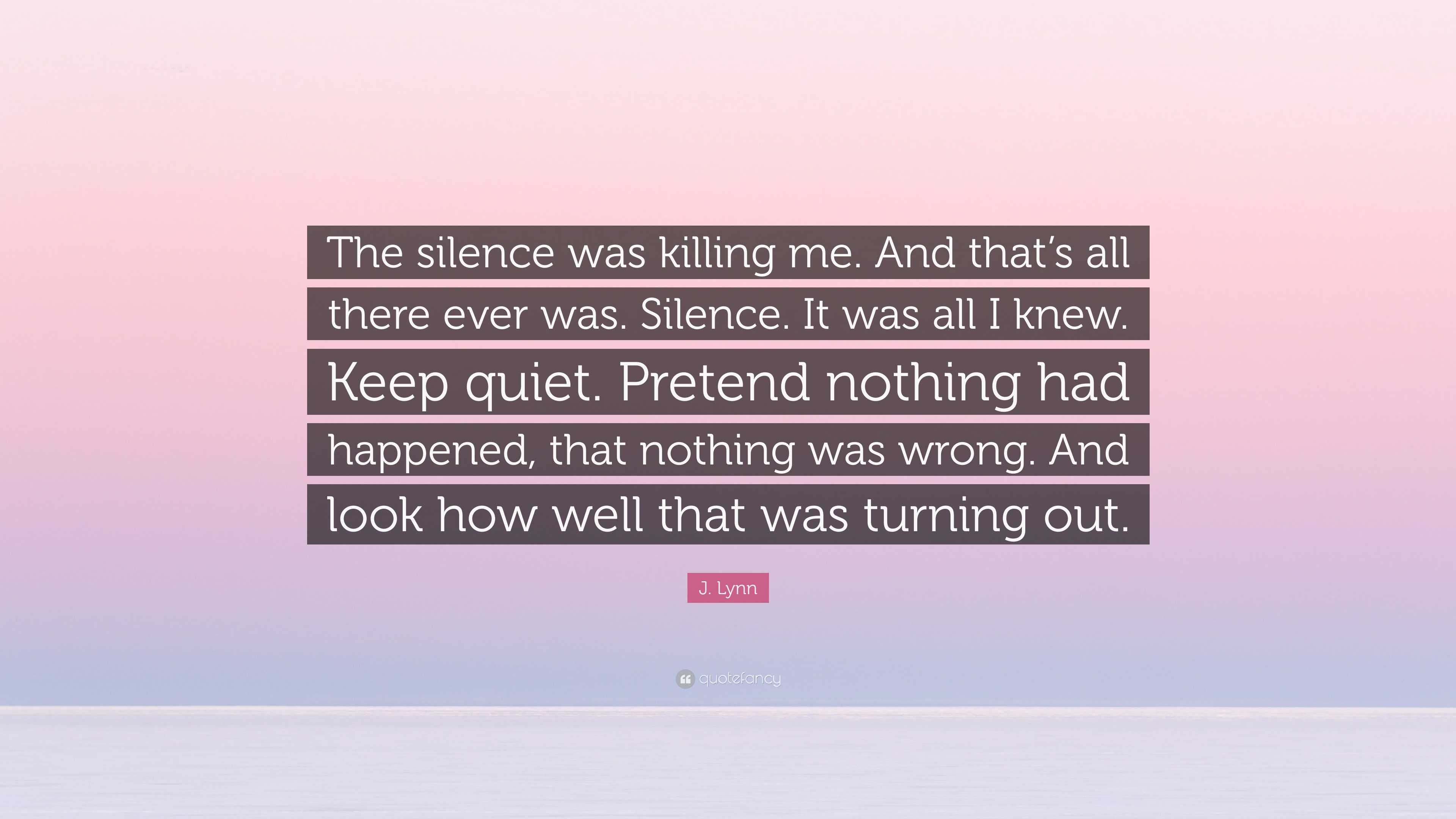 J. Lynn Quote: “The silence was killing me. And that’s all there ever ...