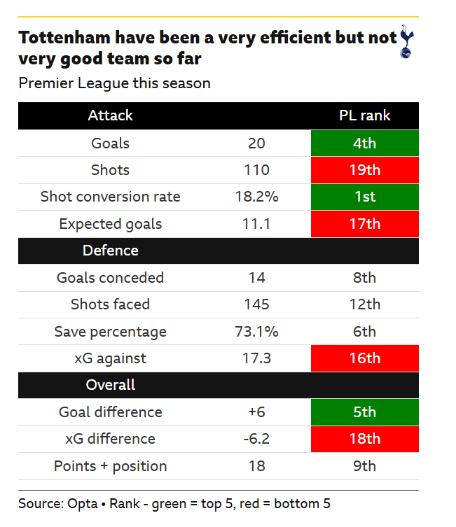 Based on this image's title: “Are Tottenham going to be relegated from the Premier League? What stats ...”