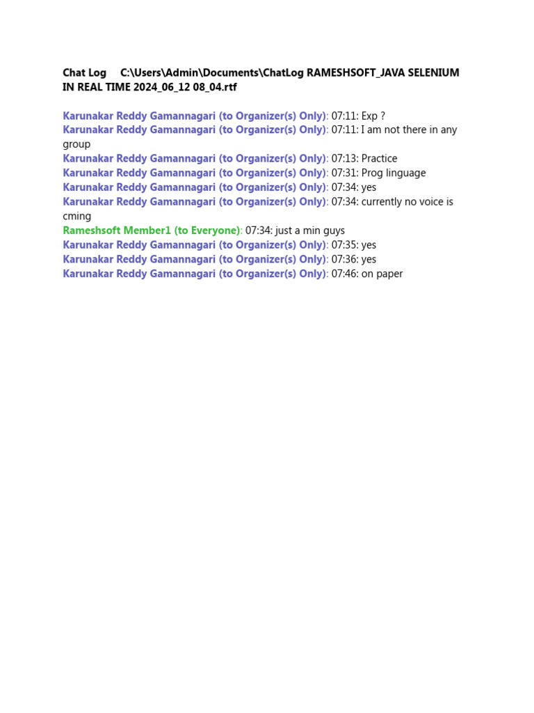 Chatlog Rameshsoft - Java Selenium in Real Time 2024-06-12 08 - 04 | PDF
