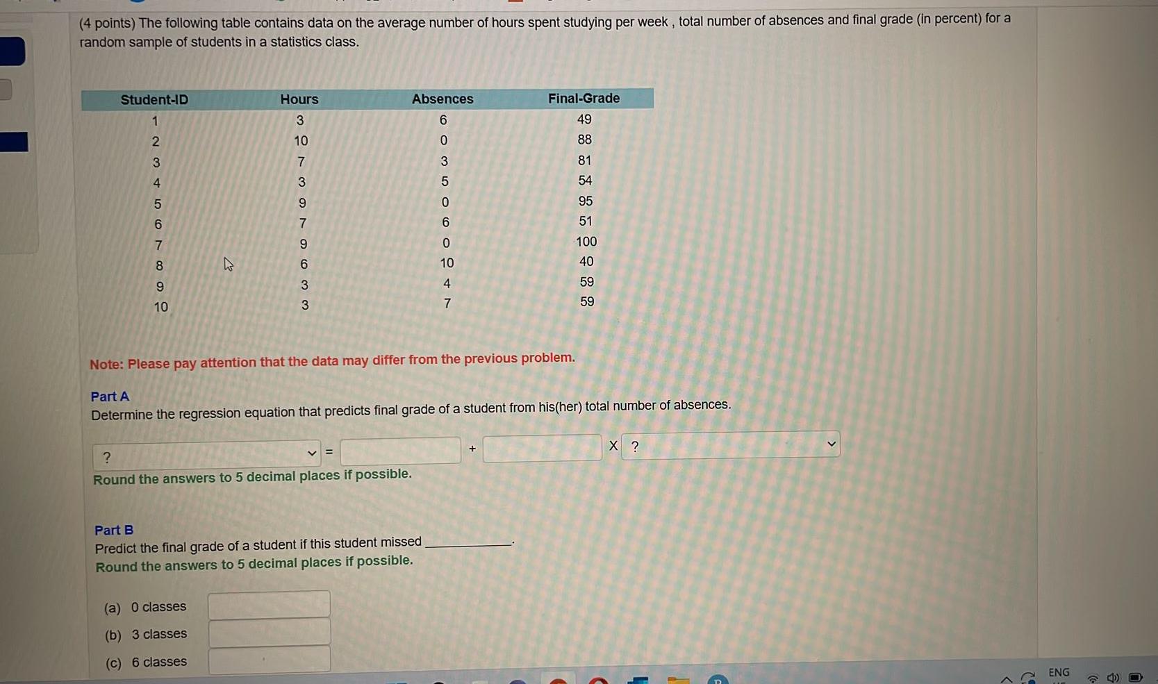 Solved Question 38 (5 points) Using the values in the | Chegg.com