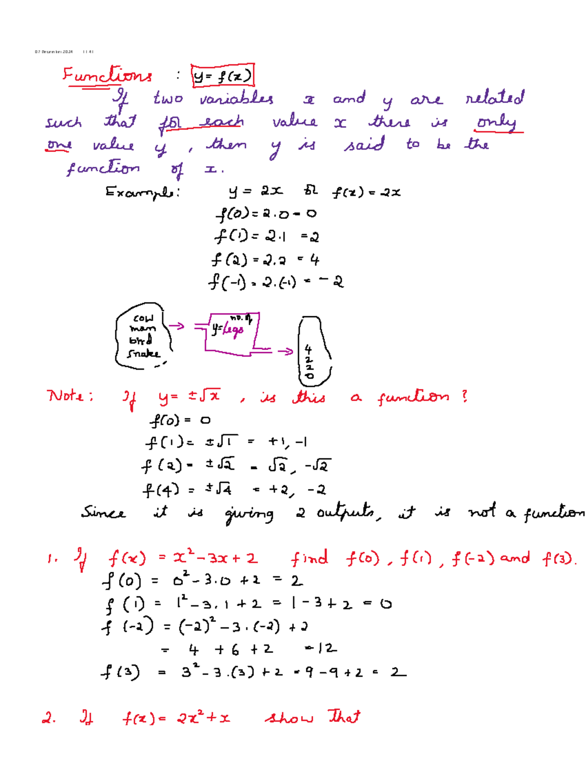 Notes 1 - BAanking operations - Exornpls! Y= ax L f(z)=2x f(oJ)=a~-0 F ...
