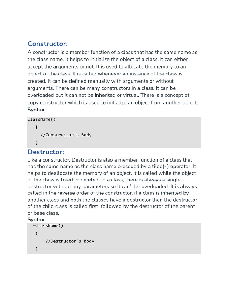Constructor vs Destructor in C++ | PDF | Constructor (Object Oriented ...