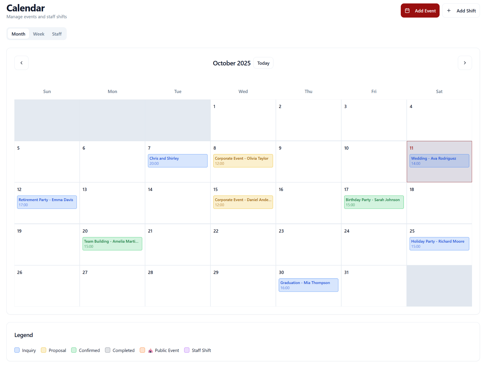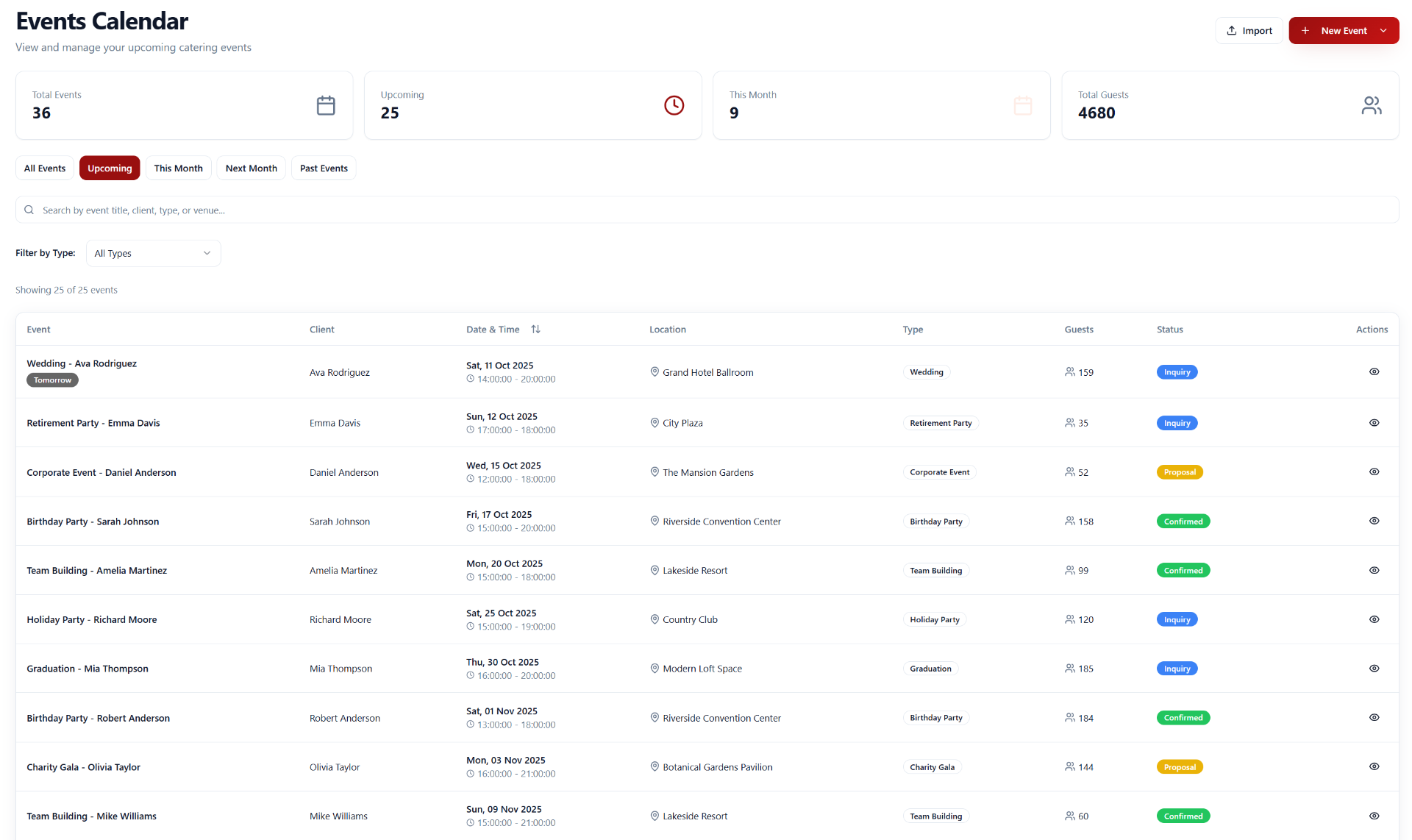 Catering Event Calendar
