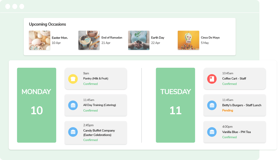 Daily Catering Calendar - Office Breakfast/Lunch Meal Program