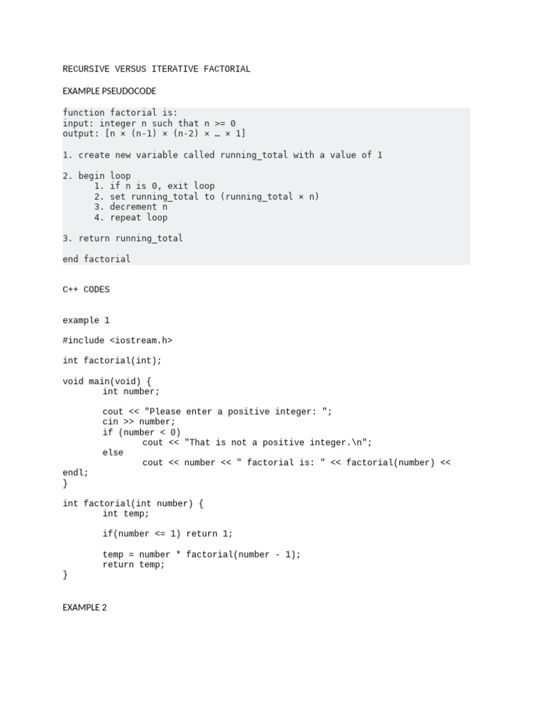 Recursive Factorial in C++ Example of Code For CLASS PRACTICE | PDF ...