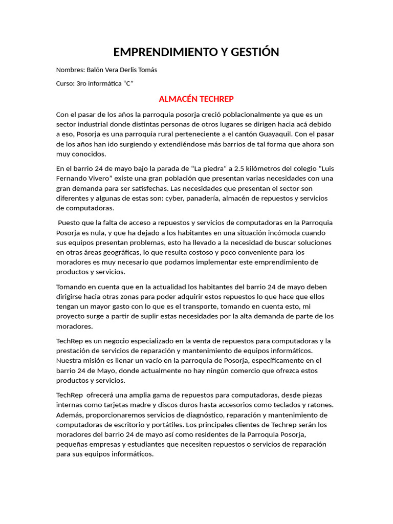 Balón Vera Derlis Tomás-Emprendimiento y Gestión. | PDF | Calidad ...