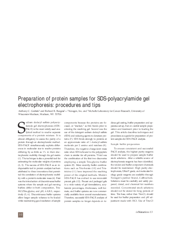 (PDF) Preparation of protein samples for SDS-polyacrylamide gel ...