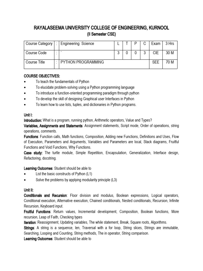 Python Programming Syllabus | PDF | Parameter (Computer Programming ...