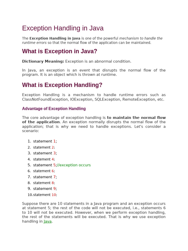 Exception Handling in Java | PDF