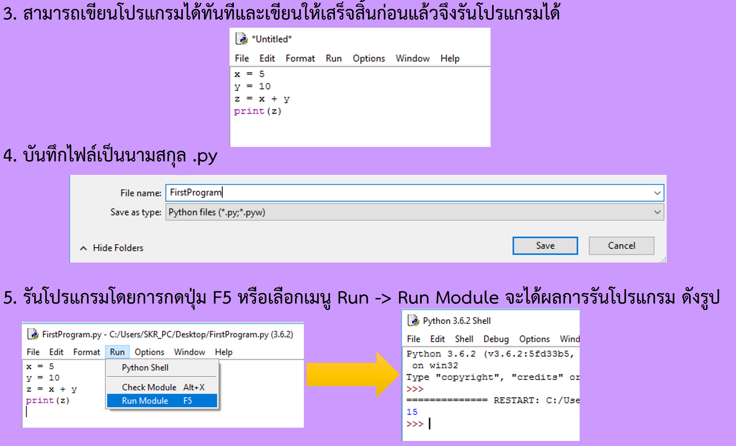 1.5 การเขียนโปรแกรมไพทอนเบื้องต้น – การเขียนโปรแกรมภาษาไพธอน