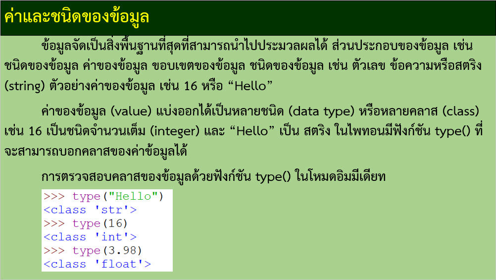 2.1 ชนิดของข้อมูลและตัวแปร – การเขียนโปรแกรมภาษาไพธอน