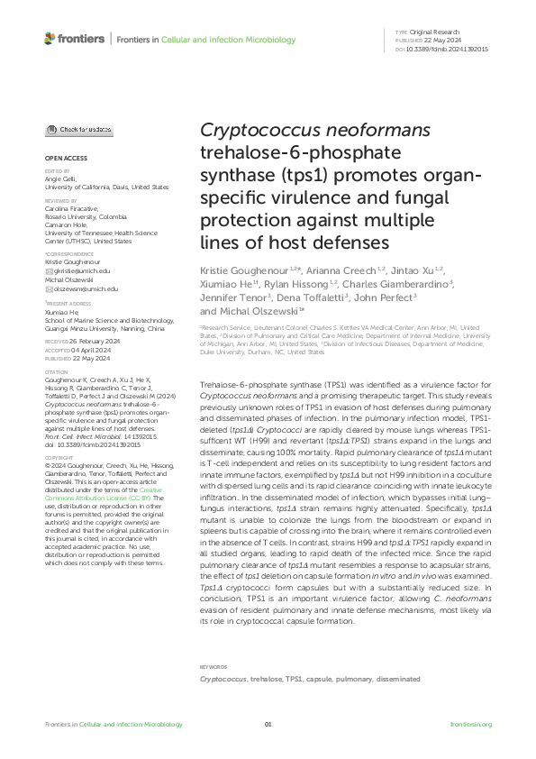 (PDF) Cryptococcus neoformans trehalose-6-phosphate synthase (tps1 ...