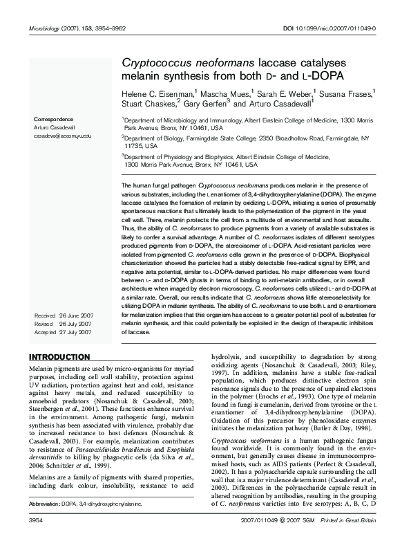 (PDF) Cryptococcus neoformans laccase catalyses melanin synthesis from ...