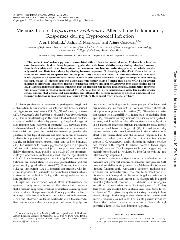 (PDF) Melanization of Cryptococcus neoformans Affects Lung Inflammatory ...