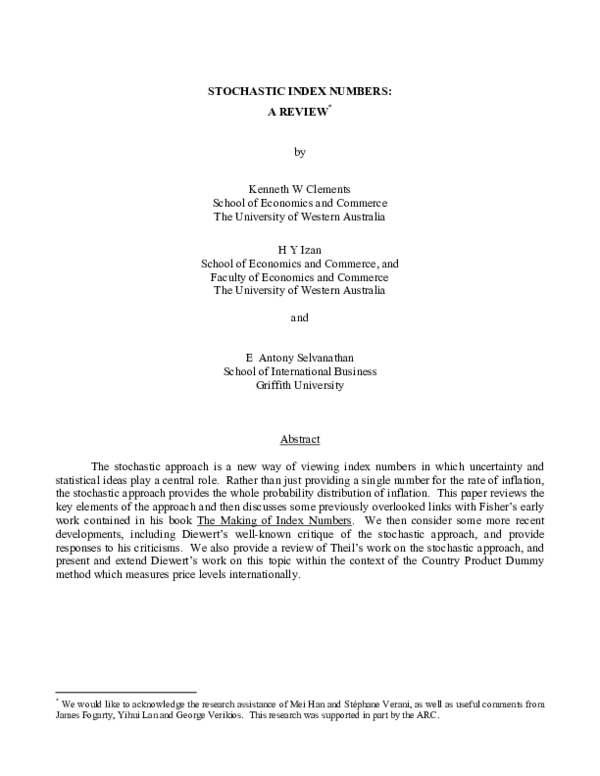 (PDF) Stochastic Index Numbers: A Review