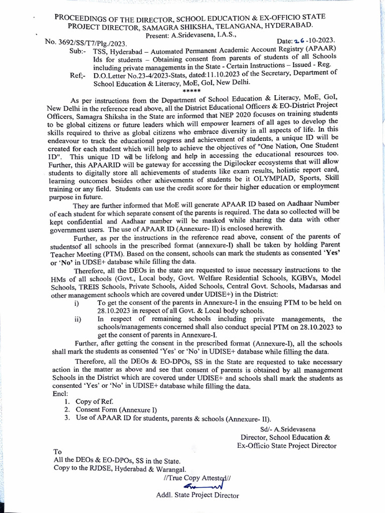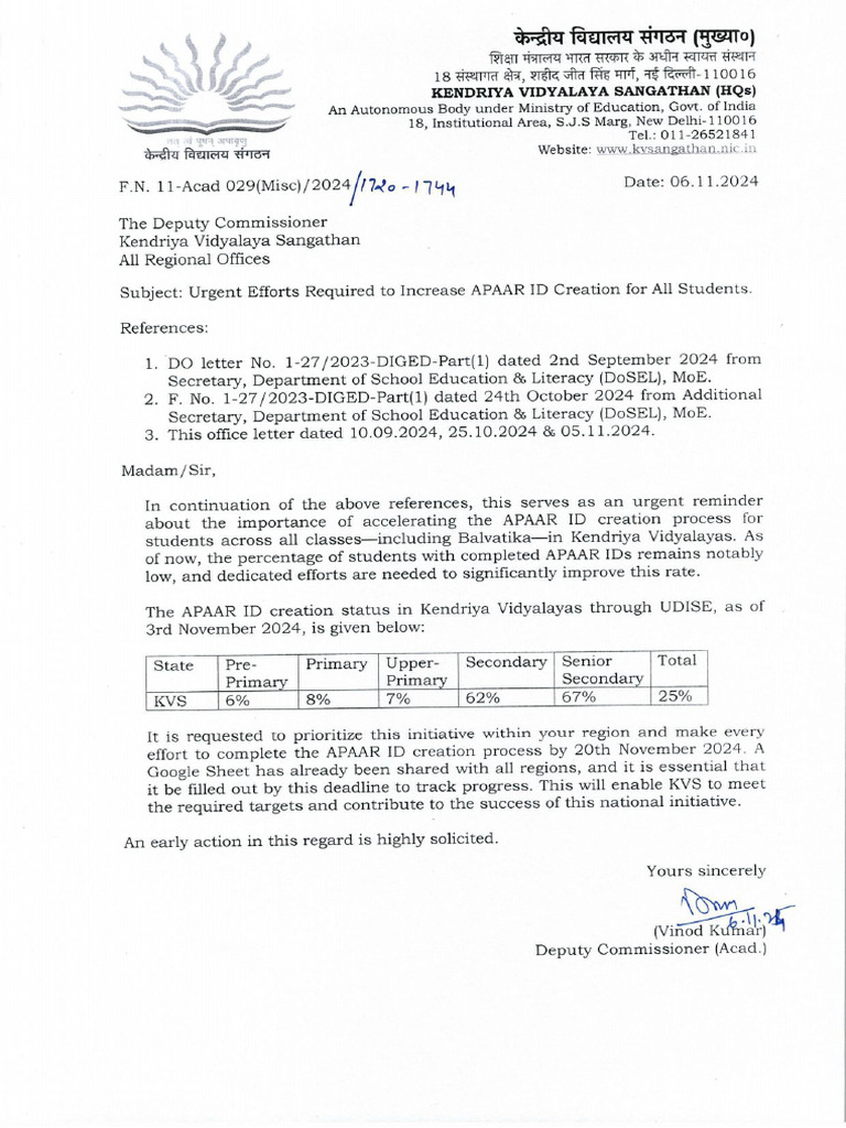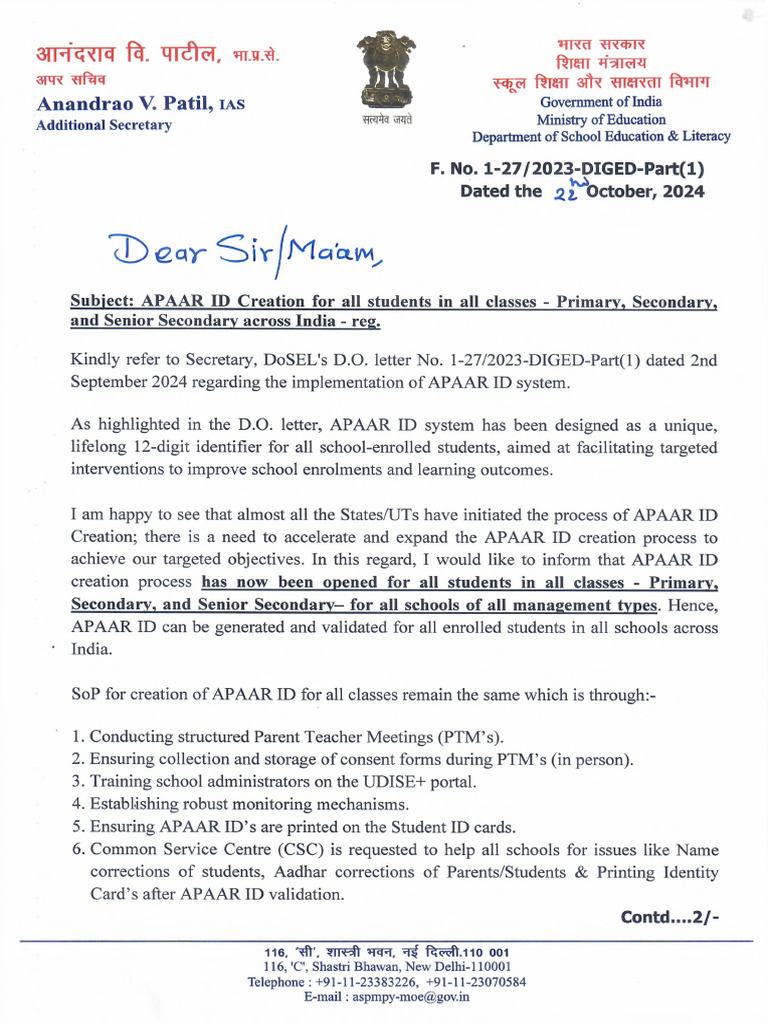 Steps and Letter regarding creation of APAAR ID (Automated Permanent ...