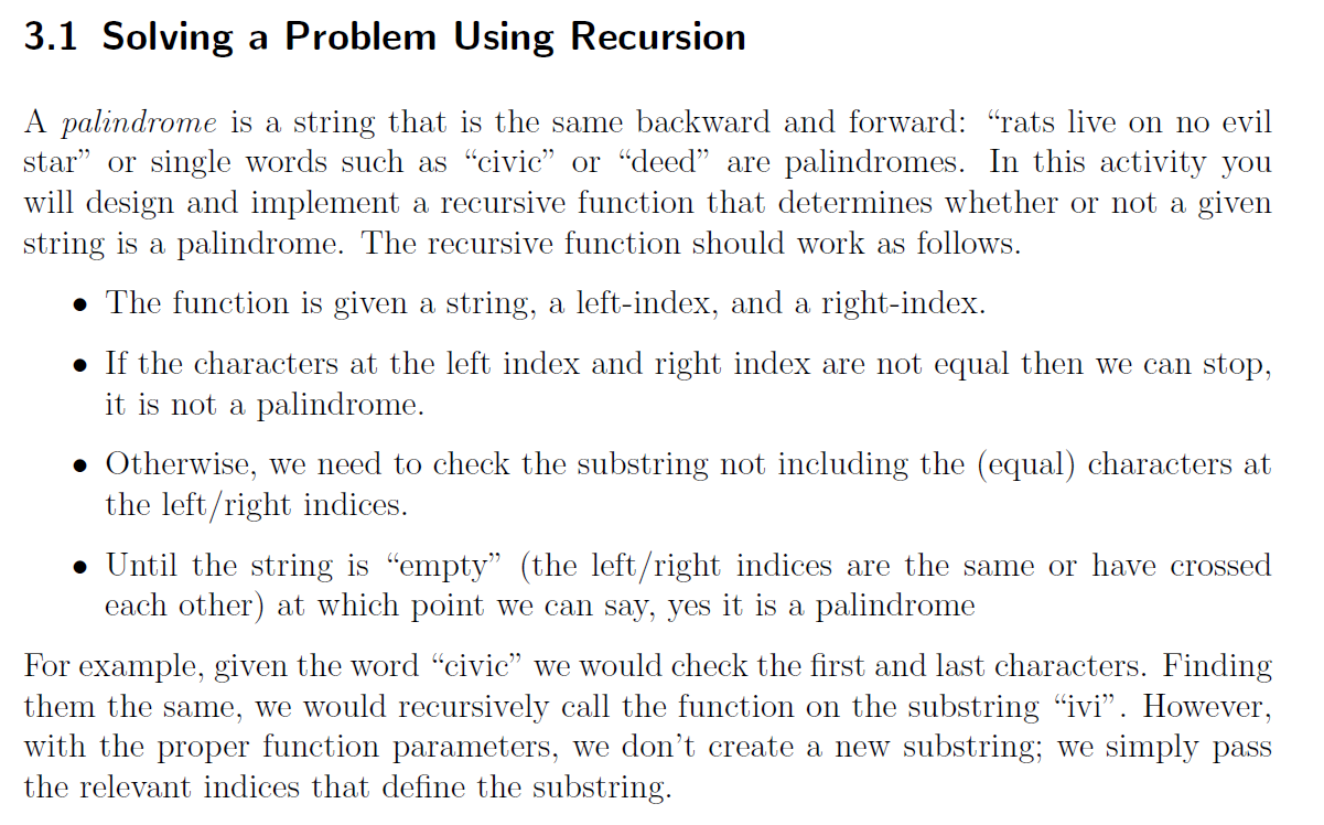 Solved 3.1 Solving a Problem Using Recursion A palindrome is | Chegg.com